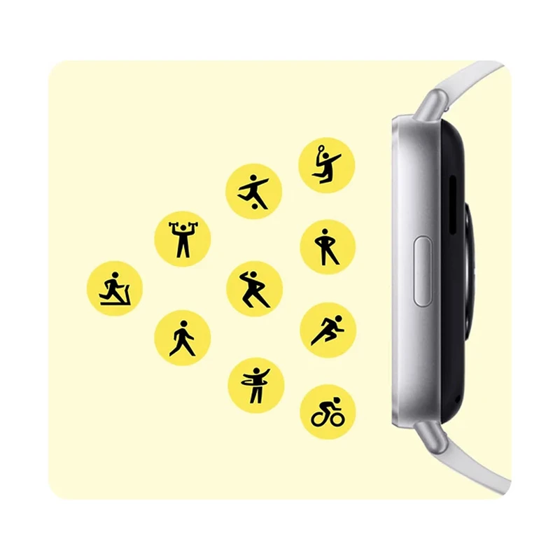 | سایر مشخصات و قابلیتها | پشتیبانی از 140 حالت ورزشی مختلف، تشخیص خودکار فعالیت ورزشی، پایش ضربان قلب، اندازهگیری سطح اکسیژن خون، پایش وضعیت خواب، پایش وضعیت استرس، پایش وضعیت سلامت بانوان، گامشمار، محاسبه کالری مصرفشده، برنامه تمرین تنفس، قابلیت شخصیسازی واچ فیس، نمایش وضعیت آب و هوا، نمایش اعلانهای گوشی و تقویم، نمایش روز و ساعت، تایمر، هشدار بیدارباش، کنترل موسیقی، دارای میکروفون، پشتیبانی از دستیار صوتی، سازگار با استراوا و اپل Health |