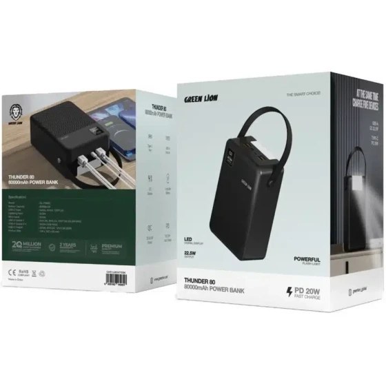 پاوربانک گرین لاین ۸۰۰۰۰ مدل Green lion 22.5 W