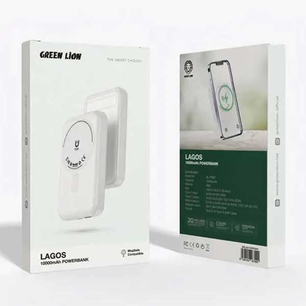 برای افرادی که به دنبال یک پاوربانک با کیفیت و کارآمد هستند، Green Lion LAGOS 10000mAh Magsafe Power Bank یک گزینه بسیار مناسب به شمار میرود. پاور مگ سیف ۱۰ هزار green مدل lagos با ویژگی های منحصر به فرد و طراحی زیبا، نیازهای کاربران را به خوبی برآورده می کند و به یکی از لوازم جانبی ضروری برای کاربران گوشی های هوشمند تبدیل شده است.