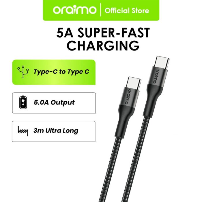 کابل Type C به Type C اورایمو مدل OCD-173CC، یکی از محصولات باکیفیت و کاربردی است که با طراحی مدرن و عملکرد بی نظیر خود به کاربران این امکان را می دهد تا به راحتی و با سرعت بالا دستگاه های خود را شارژ و دیتا منتقل کنند. این کابل تایپ سی به خصوص برای کاربرانی که از دستگاه های جدیدی مانند گوشی های هوشمند، تبلت ها و لپ تاپ هایی که به درگاه USB Type C مجهز هستند، طراحی شده است. در اینجا به بررسی جزئیات فنی، ویژگی ها و مزایای این محصول خواهیم پرداخت.
