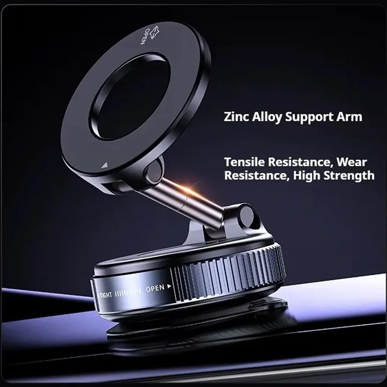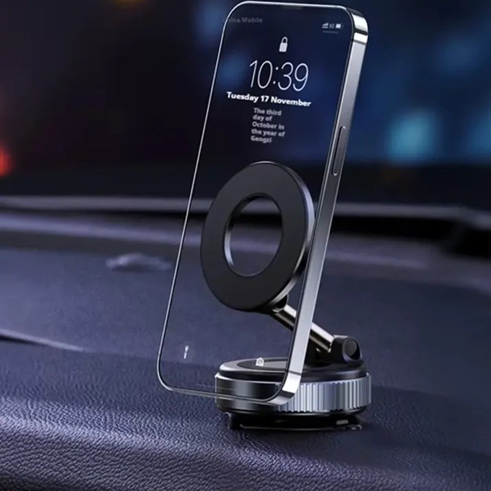 پایه مکشی این هولدر مجهز به فناوری وکیوم هوشمند است که بهراحتی به شیشه خودرو، میز کار، آینه یا سطوح صاف دیگر میچسبد و حتی در شرایط لرزشی (مانند ترمزهای ناگهانی) نیز از جدا شدن جلوگیری میکند. این ویژگی آن را به انتخابی امن برای رانندگان حرفهای تبدیل کرده است.