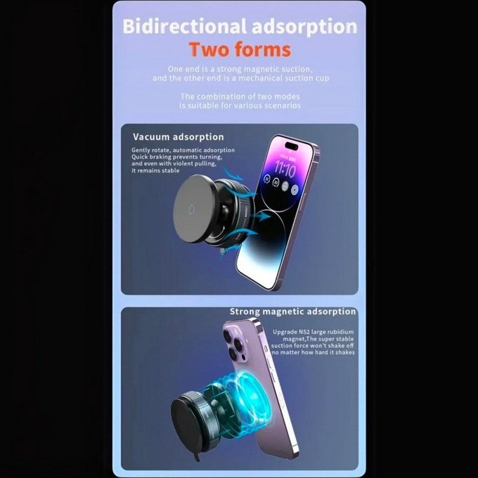ويژگی ها | مکش خلاء – نگهدارنده تلفن – طراحی نوآورانه – نیروی مغناطیسی فوق العاده |